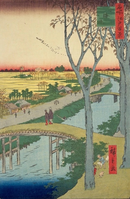 | 上の参考図は江戸切絵図と同時期に販売された広重画『名所江戸百景』から4景を拾いました 『名所江戸百景』安政3~5年 国会図書館蔵 錦絵デジタルコレクションNDLサーチより転載 参考解説 『広重名所江戸百景』ヘンリー・スミス著 生活史研究所監訳 岩波書店 1992 | ||||