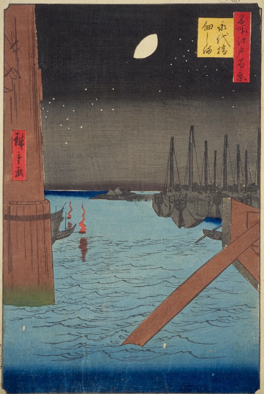 | 上の参考図は尾張屋の江戸切絵図が販売されていた安政期(3~5年)に板行された広重画『名所江戸百景』から夕景・夜景を拾いました 国立国会図書館蔵 錦絵デジタルコレクションNDLサーチより転載 参考解説『広重名所江戸百景』 ヘンリー・スミス著 岩波書店刊 1992 |