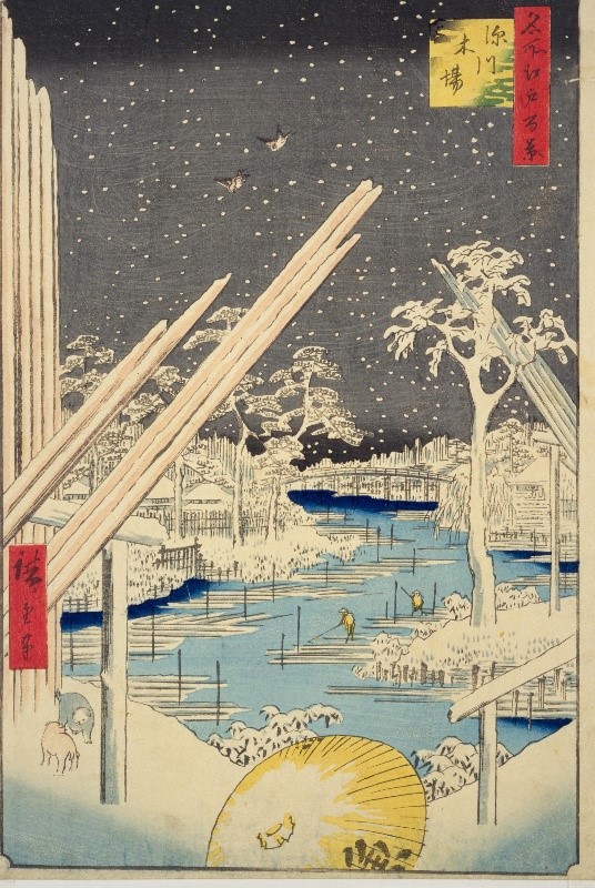 ![]() 参考図3 深川木場 広重『名所江戸百景』 安政3年(1856)より 江戸切絵図 14 深川絵図 (検索 14い四、に参、ほ参) |